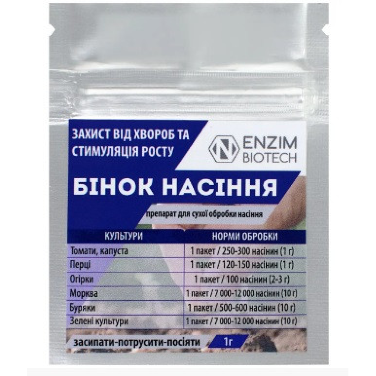 Біофунгіцид для захисту від хвороб та стимуляції росту насіння Бінок насіння 1 г, Enzim agro